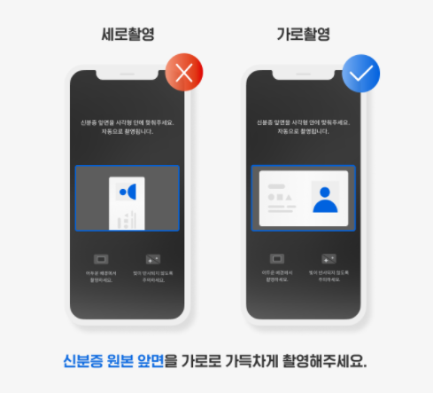 - 신분증 원본 앞면을 가로로 가득차게 촬영한다.