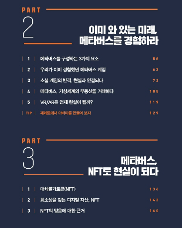 '메타버스, 이미 시작된 미래'는 총 5개의 파트로 나눠져 있다.