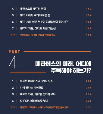 Part 3 메타버스, NFT로 현실이 되다 에서는 대체불가토큰인 NFT에 대해서 적나라하게 분석하고, 메타버스와 NFT는 필술불가결한 결합체임을 알 수 있게 해준다.