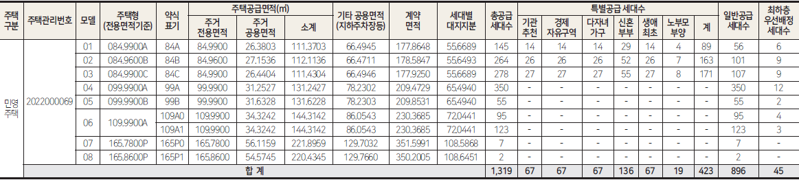 전용면적별 가구 수는 84㎡ 687가구, 99㎡ 405가구, 109㎡ 218가구, 165㎡ 9가구 등 최근 수요에 맞춰 중대형으로 이뤄져 있다.