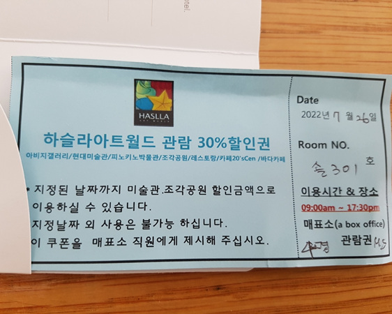 투숙객은 30% 할인된 금액으로 구매할 수 있는데, 우리 가족은 36,400원에 미술관을 관람할 수 있었다.