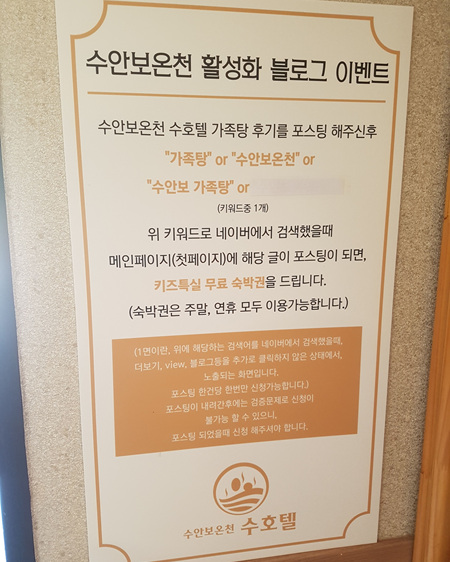 아, 수안보온천 활성화 블로그 이벤트가 진행중인데, '가족탕', '수안보온천', '수안보 가족탕' 키워드로 메인페이지에 글이 포스팅 되면 키즈특실 무료 수박권을 준다고 합니다.ㅠㅠ