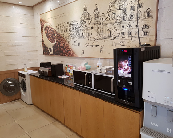 1층 인포에는 커피머신, 정수기, 전자레인지, LP, 드럼세탁기가 있어서 상당한 도움을 받았다는 것.